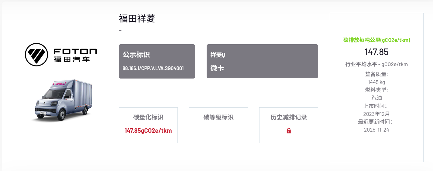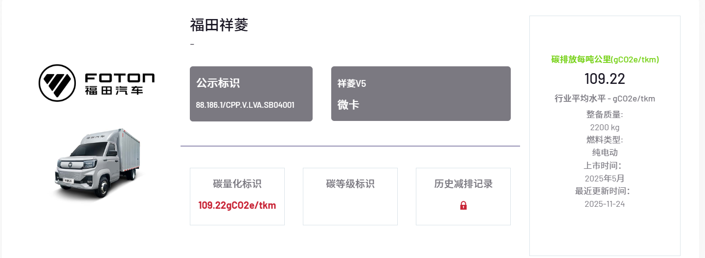 11月24日,北汽福田汽車股份有限公司(以下簡稱“福田汽車”)祥菱Q、祥菱V5兩款微卡車型順利通過中國汽車產(chǎn)業(yè)鏈碳公示平臺(CPP平臺)嚴格審核,斬獲碳足跡量化標識。加之此前6款已獲該標識的重卡、輕卡產(chǎn)品,福田汽車正式覆蓋重卡、輕卡、微卡的系列低碳商用車產(chǎn)品認證,成為行業(yè)綠色轉(zhuǎn)型的標桿性企業(yè),也標志著其綠色低碳發(fā)展之路再添關鍵里程碑。