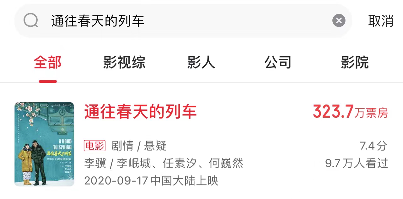 《通往春天的列車》票房失利,來源:貓眼專業(yè)版