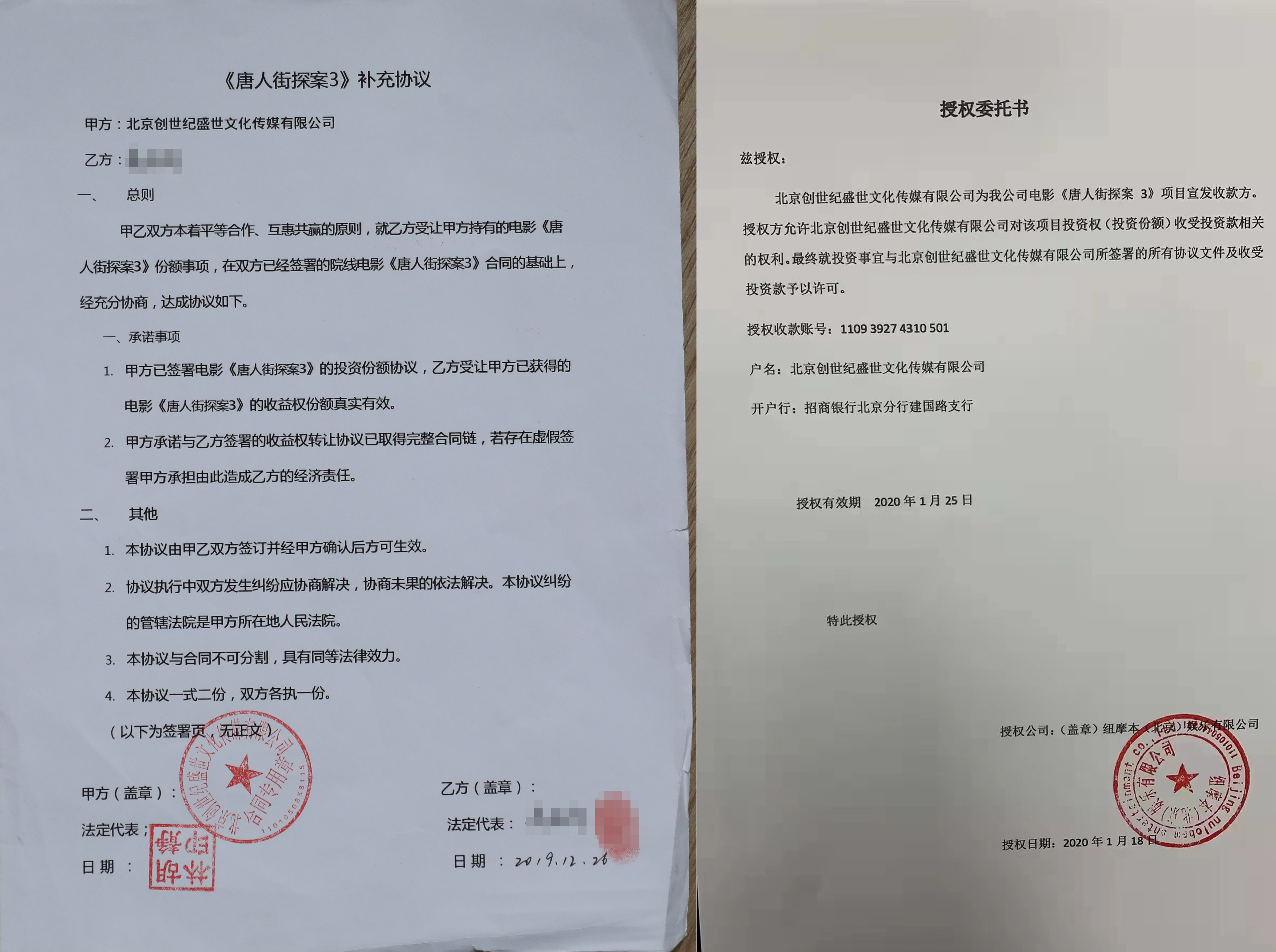 過去一個(gè)月里,《證券日?qǐng)?bào)》記者聯(lián)系統(tǒng)計(jì)了124位自然人的詳細(xì)信息,自2019年8月份至2021年2月份,他們共計(jì)投入1772萬元,希望拿到電影《唐人街探案3》(以下簡(jiǎn)稱《唐探3》)的投資份額,而匯款單的終點(diǎn)是北京創(chuàng)世紀(jì)盛世文化傳媒有限公司(以下簡(jiǎn)稱“創(chuàng)世紀(jì)”)與紐摩本(北京)娛樂有限公司(以下簡(jiǎn)稱“紐摩本”)。