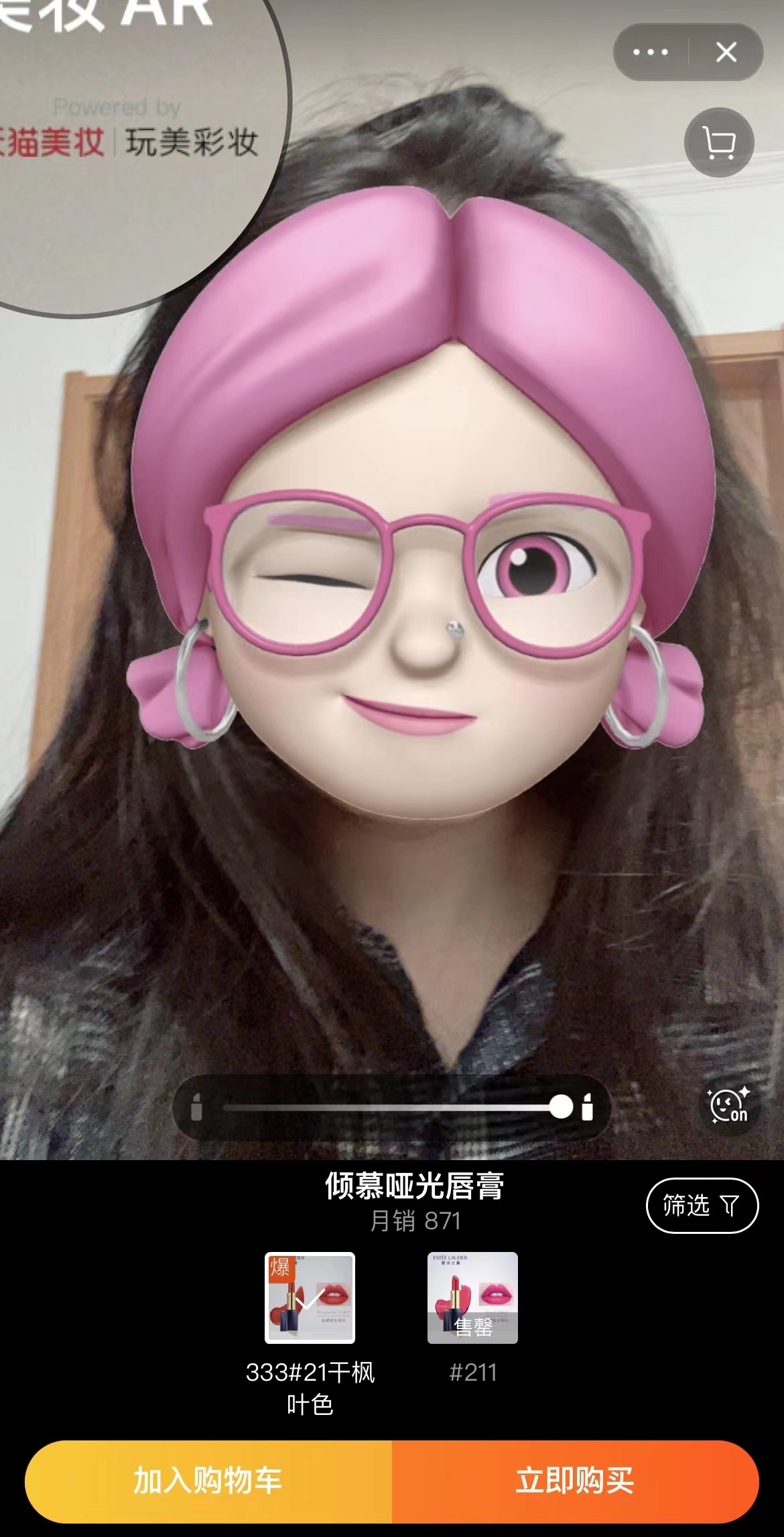 如何吸引?例如,記者搜索發(fā)現(xiàn)天貓部分彩妝旗艦店提供“線上試妝”服務(wù)。在雅詩蘭黛旗艦店的一款口紅頁面,試著點擊在線試妝后,可以滑動相關(guān)按鈕,查看該色號的涂抹效果。而頁面左上角則顯示該技術(shù)屬于“玩美彩妝”。