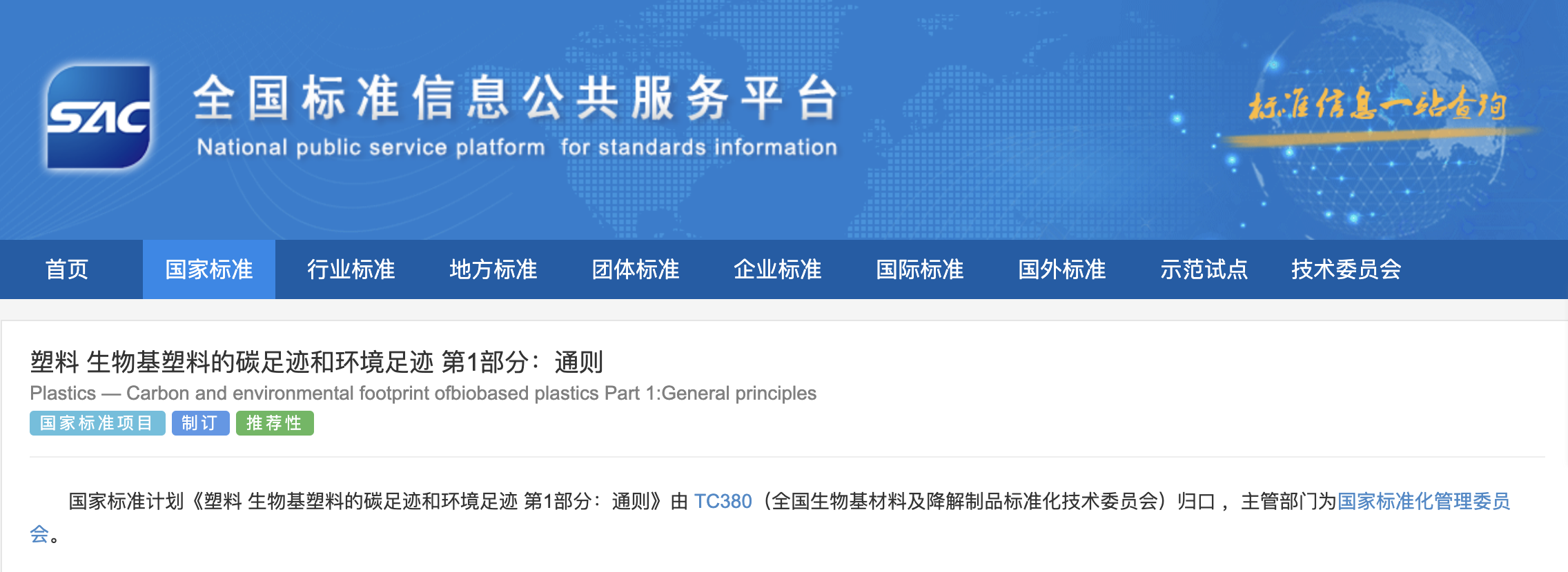 據(jù)全國標(biāo)準(zhǔn)信息公共服務(wù)平臺官網(wǎng)顯示,國家標(biāo)準(zhǔn)《塑料生物基塑料的碳足跡和環(huán)境足跡第1部分:通則》自2月1日起施行。