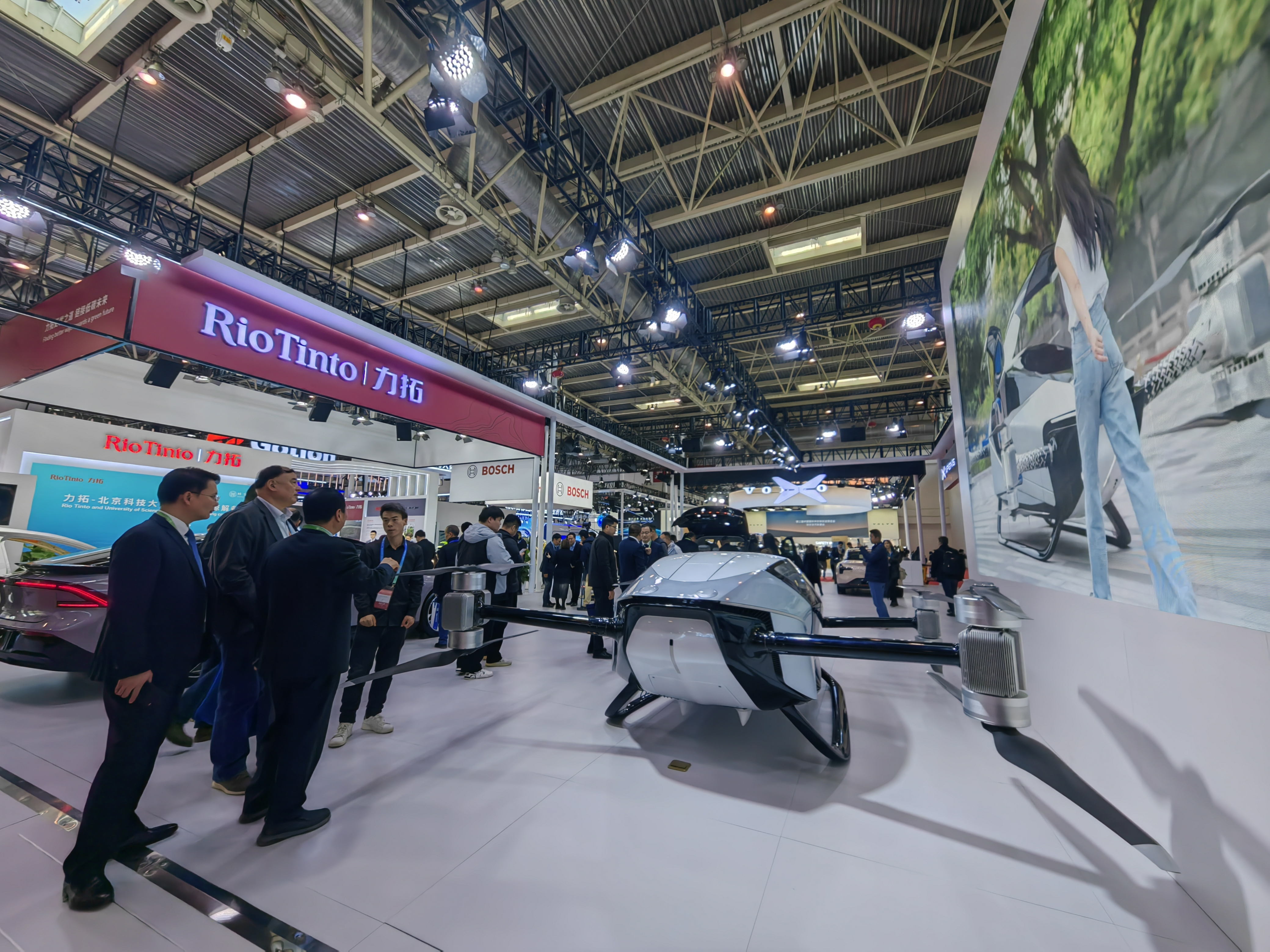 與力拓/寶武集團展臺相鄰的,是博世/小鵬聯(lián)合展臺。其中最吸引人眼球的,是一款雙人版智能電動垂直起降飛行器“旅航者X2”。小鵬展臺工作人員向記者介紹,2022年底,“旅航者X2”獲得工信部頒發(fā)的“中國優(yōu)秀工業(yè)設(shè)計獎”金獎;2023年1月,“旅航者X2”獲得中國民用航空中南地區(qū)管理局頒發(fā)的特許飛行證,是國內(nèi)提出申請并成功獲批的有人駕駛eVTOL(電動垂直起降)產(chǎn)品。