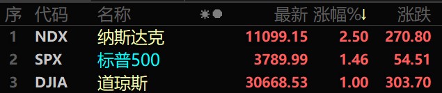 受消息面影響,美股三大指數(shù)出現(xiàn)下挫,之后拉升,截至當(dāng)?shù)貢r(shí)間6月15日收盤,美股三大指數(shù)集體收漲,道瓊斯指數(shù)漲1%,報(bào)30668.53點(diǎn);標(biāo)普500指數(shù)漲1.46%,報(bào)3789.99點(diǎn);納斯達(dá)克指數(shù)漲2.5%,報(bào)11099.15點(diǎn)。