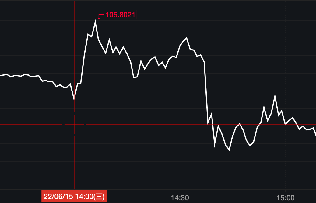美元指數(shù)也同樣短線沖高至105以上后波動(dòng)下行。據(jù)wind數(shù)據(jù)顯示,截至北京時(shí)間6月16日11點(diǎn)15分,美元指數(shù)報(bào)104.8900,年初至今上漲9.29%。