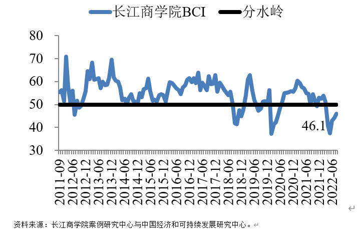 8月29日,長(zhǎng)江商學(xué)院發(fā)布的2022年8月份“長(zhǎng)江商學(xué)院中國(guó)企業(yè)經(jīng)營(yíng)狀況指數(shù)”(簡(jiǎn)稱(chēng)BCI)為46.1,與2022年7月份的44.3相比有小幅上升。