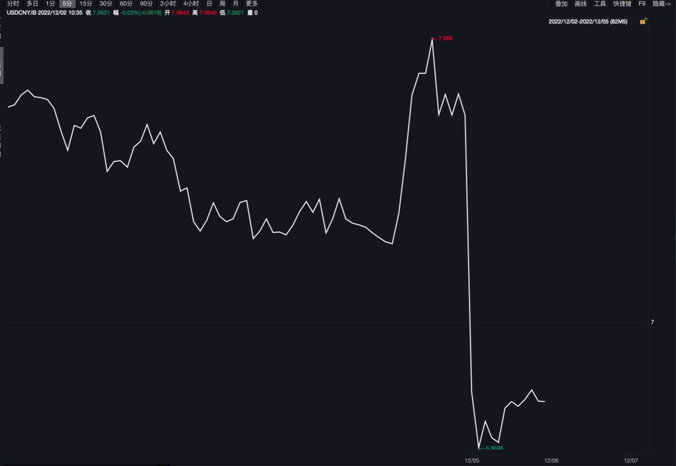 Wind數(shù)據(jù)顯示,12月5日亞洲交易時(shí)段盤中,在岸、離岸人民幣對(duì)美元匯率出現(xiàn)強(qiáng)勢(shì)拉升,雙雙收復(fù)“7”關(guān)口。這是自今年9月中旬人民幣對(duì)美元匯率“跌破7”以來,重回“6”字頭。