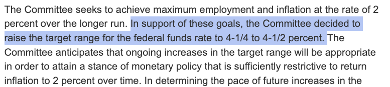 北京時(shí)間12月15日凌晨,美聯(lián)儲(chǔ)公布了12月份FOMC(聯(lián)邦公開市場(chǎng)委員會(huì))會(huì)議聲明,根據(jù)聲明,美聯(lián)儲(chǔ)將聯(lián)邦基金利率提升50個(gè)基點(diǎn)至4.25%-4.5%區(qū)間,創(chuàng)十五年來(lái)新高。自今年3月份以來(lái),美聯(lián)儲(chǔ)已進(jìn)行七次加息,累計(jì)加息425個(gè)基點(diǎn)。
