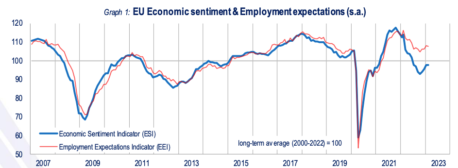 2月27日18時(shí),由歐盟經(jīng)濟(jì)和財(cái)政事務(wù)委員會(huì)編撰的經(jīng)濟(jì)景氣指數(shù)報(bào)告(以下簡(jiǎn)稱“報(bào)告”)出爐,2月份,歐盟、歐元區(qū)經(jīng)濟(jì)景氣指數(shù)基本與前月持平,其中歐盟地區(qū)為97.8,與1月份水平一致。歐元區(qū)經(jīng)濟(jì)景氣指數(shù)則小幅下降0.1,錄得99.7。