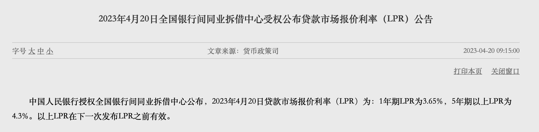 4月20日,中國人民銀行授權(quán)全國銀行間同業(yè)拆借中心公布,1年期LPR為3.65%,5年期以上LPR為4.3%。兩個品種報(bào)價(jià)均維持前值。截至目前,LPR已連續(xù)8個月原地踏步。