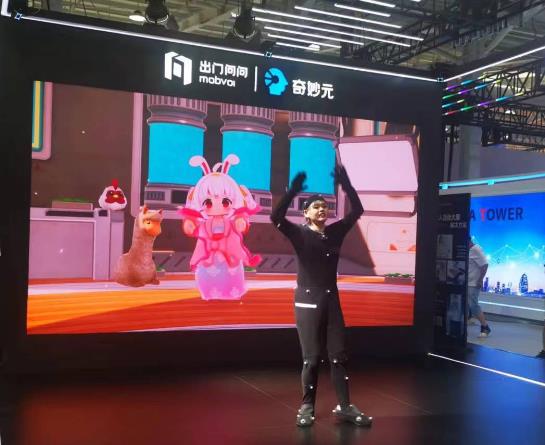 出門問問展區(qū)大屏幕前,身著動捕服裝的工作人員正跟隨音樂舞動身姿,她背后大屏幕上軟萌的3D數(shù)字人也隨之翩翩起舞。張佳欣介紹,奇妙元最輕量的技術解決方案,只用一個手機攝像頭就可以驅(qū)動數(shù)字人的動作、表情,用戶能夠讓企業(yè)像做PPT一樣輕松制作數(shù)字人視頻和直播。