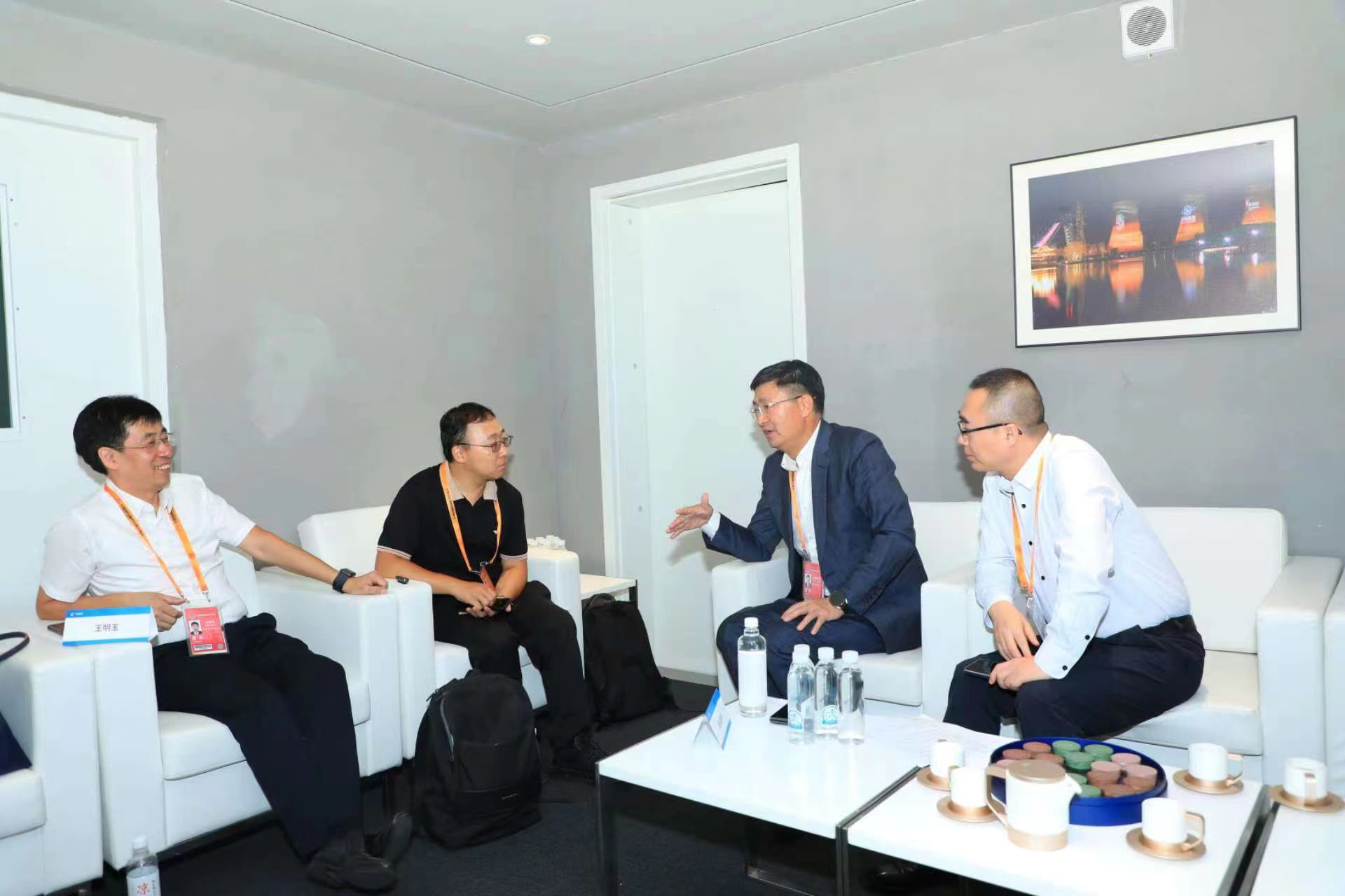 劉暢(左一)接受《證券日?qǐng)?bào)》記者采訪