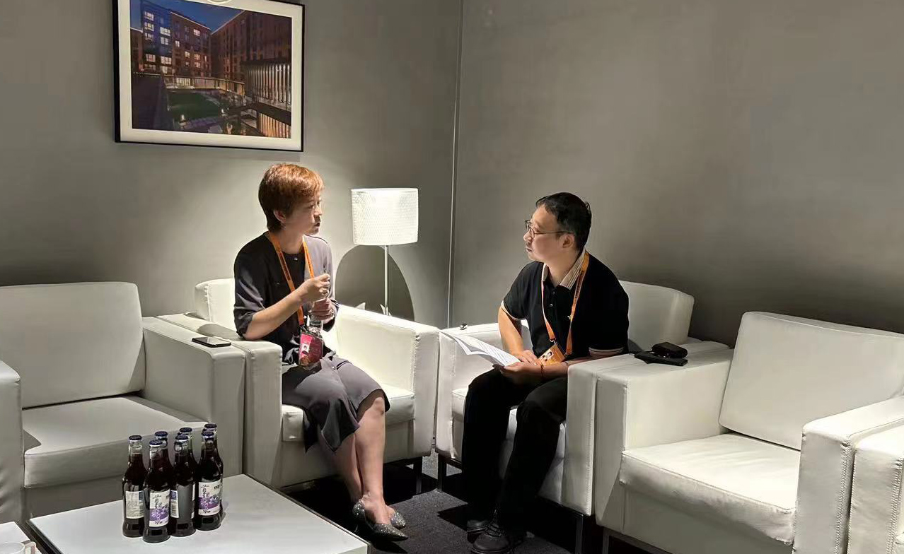 周曉凌(左一)接受《證券日?qǐng)?bào)》記者采訪