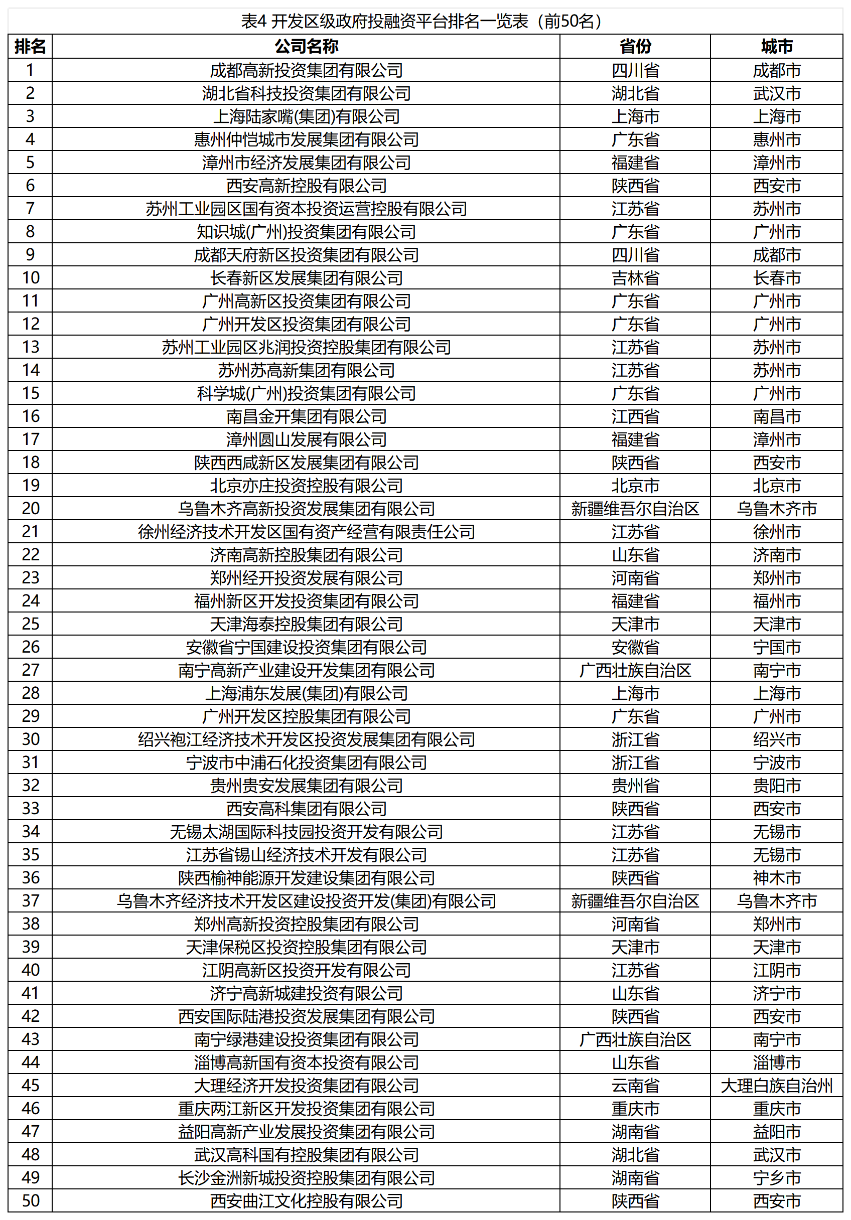 作為該書的重要一部分,該書公布了全國地方政府投融資平臺轉型發(fā)展評價結果。其中,四川發(fā)展(控股)有限責任公司、南昌市交通投資集團有限公司、閩西興杭國有資產(chǎn)投資經(jīng)營有限公司、成都高新投資集團有限公司分別位居省級、地市級、區(qū)縣級、開發(fā)區(qū)級榜單第一名。