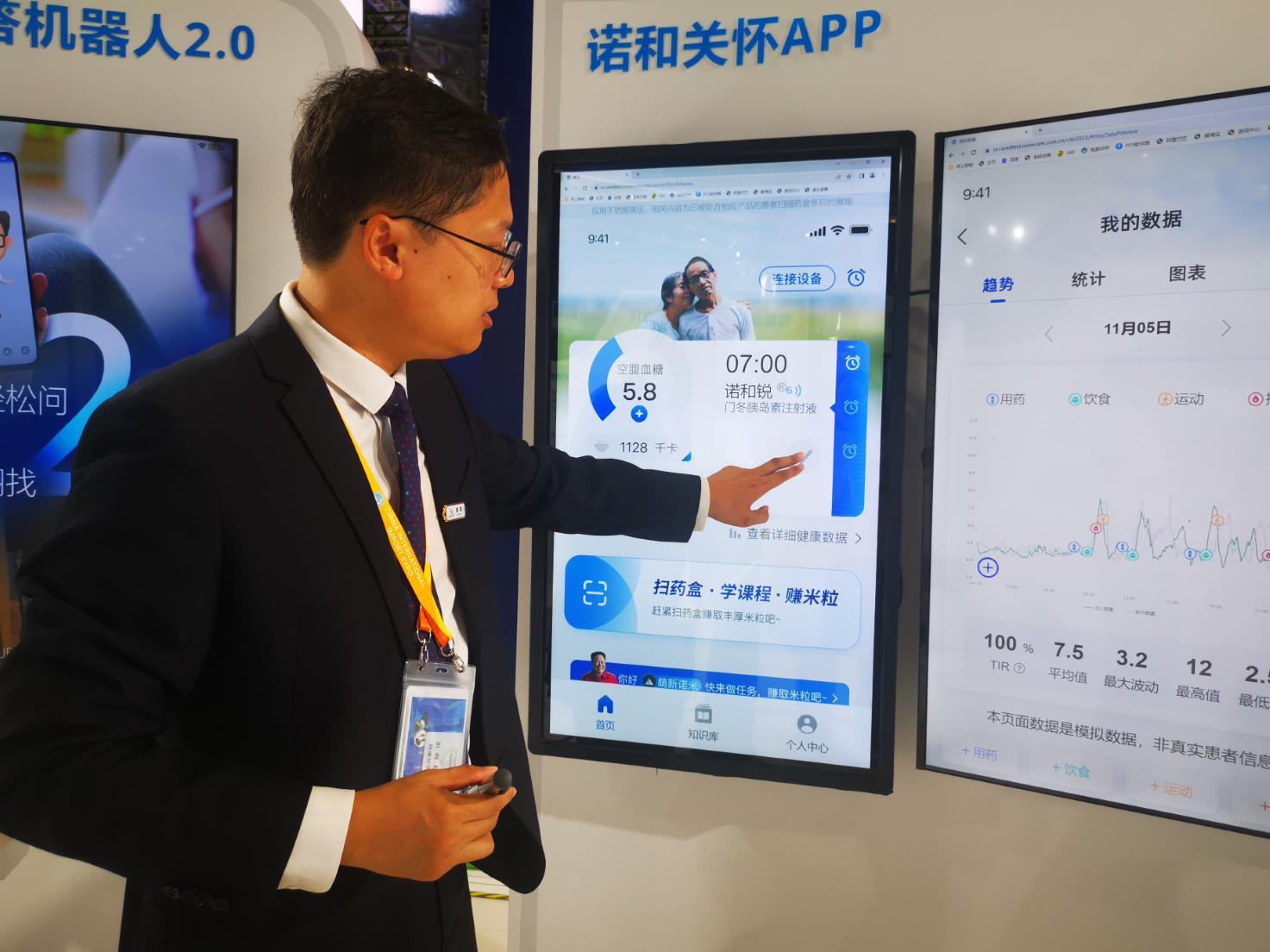 距離美敦力展臺(tái)不遠(yuǎn)的諾和諾德展臺(tái)上,有四項(xiàng)首展產(chǎn)品正式亮相,包括1款一站式糖尿病自我管理數(shù)字化解決方案——諾和關(guān)懷APP,1款新注射裝置首展,2個(gè)創(chuàng)新藥的臨床研究結(jié)果文獻(xiàn)首展。《證券日?qǐng)?bào)》記者發(fā)現(xiàn),許多觀眾都對(duì)諾和關(guān)懷APP產(chǎn)生了極大的興趣。