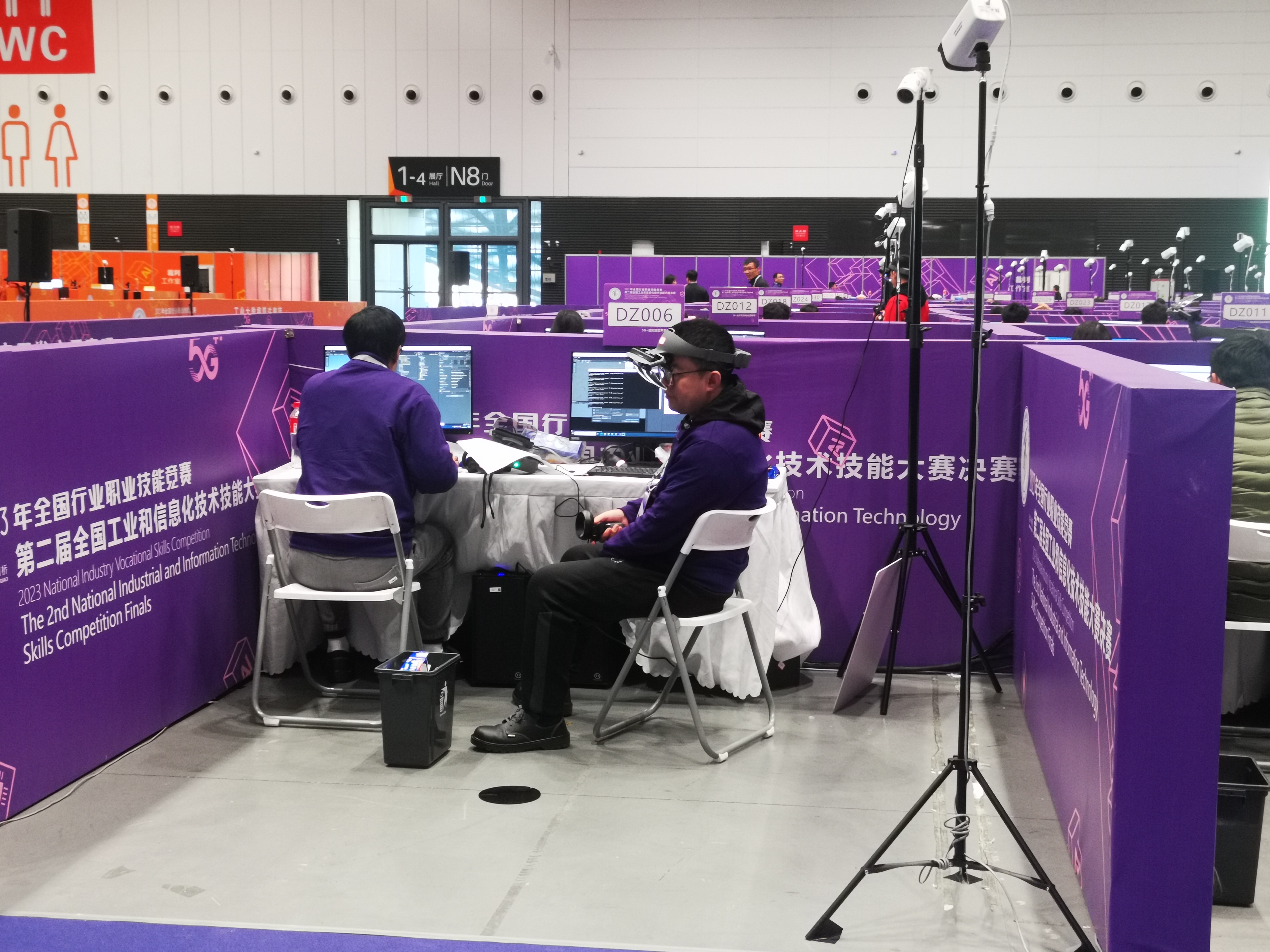 11月17日,在由工業(yè)和信息化部、人力資源社會(huì)保障部、教育部、中華全國(guó)總工會(huì)、共青團(tuán)中央共同主辦的2023年全國(guó)行業(yè)職業(yè)技能競(jìng)賽——第二屆全國(guó)工業(yè)和信息化技術(shù)技能大賽(下稱(chēng)“技能大賽”)決賽現(xiàn)場(chǎng),5G+虛擬現(xiàn)實(shí)開(kāi)發(fā)應(yīng)用賽項(xiàng)正緊張進(jìn)行中,參賽選手不斷對(duì)頭顯設(shè)備進(jìn)行調(diào)試,按照要求設(shè)計(jì)場(chǎng)景。