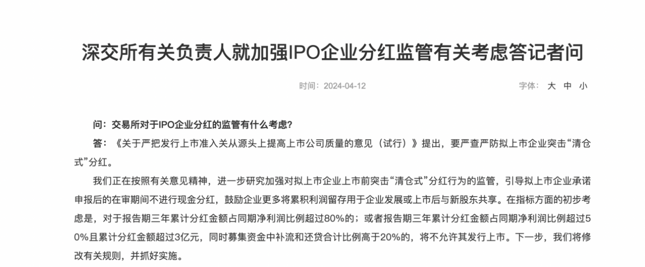 4月12日,滬深交易所有關(guān)負(fù)責(zé)人就加強(qiáng)IPO企業(yè)分紅監(jiān)管有關(guān)考慮答記者問(wèn)。