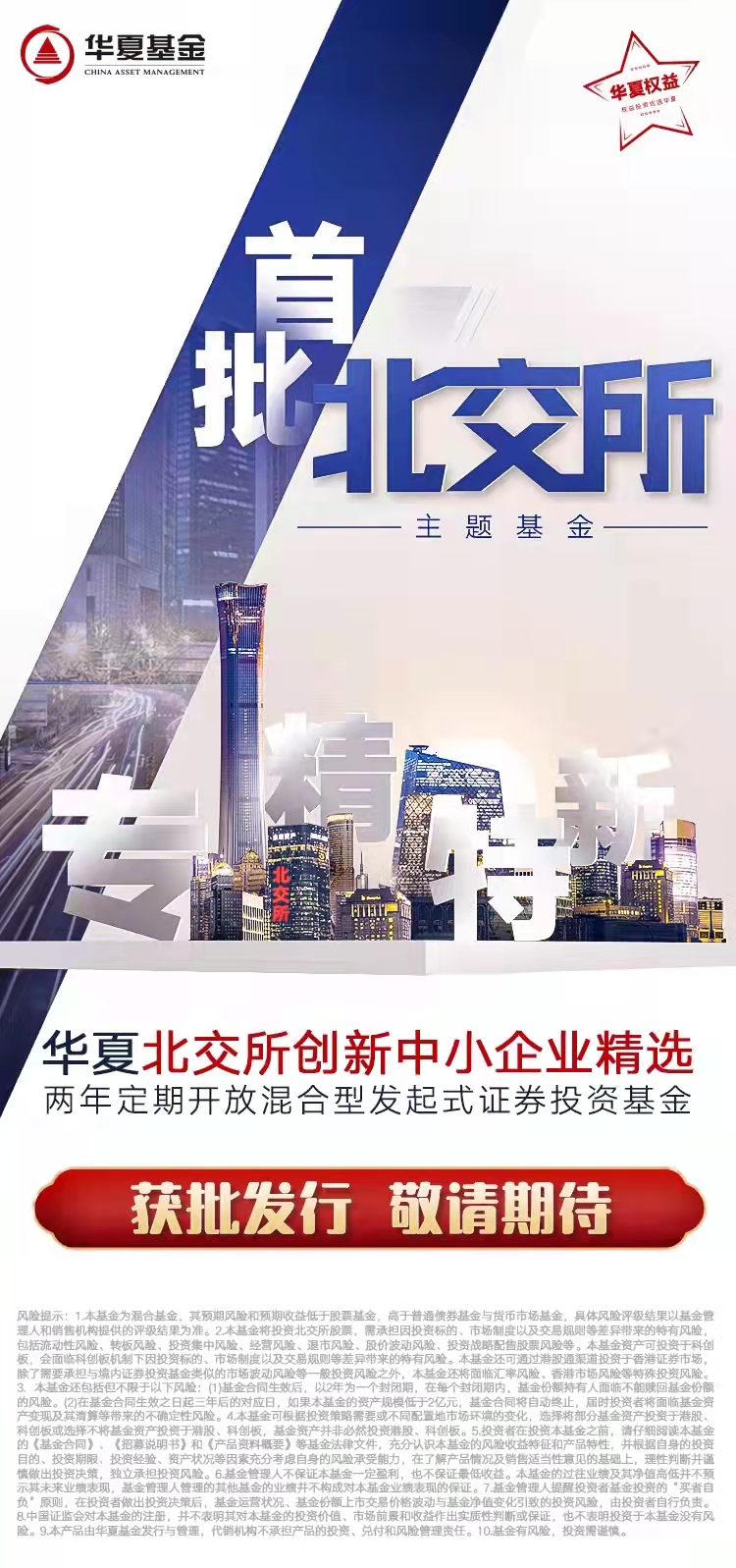 大成基金相關(guān)負責人對《證券日報》記者表示:“作為北交所的重要參與者,大成基金一直是資本市場改革創(chuàng)新的堅定支持者。在此之前,大成基金已先后發(fā)行了行業(yè)首批商品期貨基金、創(chuàng)業(yè)板戰(zhàn)略配售基金和恒生科技指數(shù)基金,在新市場、新領(lǐng)域投資上積累了豐富的經(jīng)驗。在籌備北交所主題基金的過程中,大成基金專門為北交所量身打造了一只實力雄厚的投研隊伍,十余名資深投研人員超前跟蹤信息技術(shù)、通訊、半導體、高端裝備、新能源、新材料、創(chuàng)新藥、節(jié)能環(huán)保等產(chǎn)業(yè)鏈,實現(xiàn)北交所行業(yè)全覆蓋。與此同時,充分吸收科創(chuàng)板企業(yè)估值經(jīng)驗,并結(jié)合北交所的市場生態(tài)和企業(yè)特點,為北交所定制了一套新的完整的估值體系和定價策略,力爭以專業(yè)的投研能力,積極服務北交所和北交所上市公司快速健康發(fā)展。”