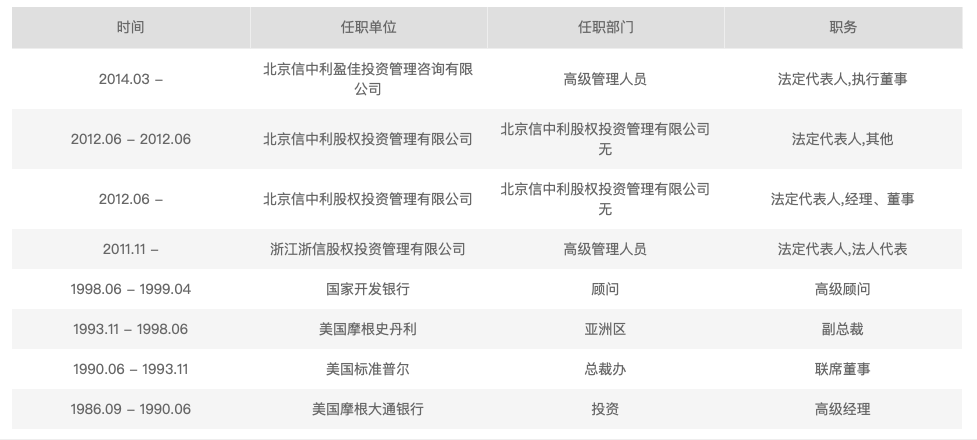 而汪潮涌的從業(yè)經(jīng)歷也相當(dāng)豐富,在1999年汪潮涌創(chuàng)辦信中利資本集團并擔(dān)任董事長之前,其還曾就職于國家開發(fā)銀行、美國摩根大通銀行、美國標準普爾、摩根士丹利等眾多知名的金融機構(gòu)。