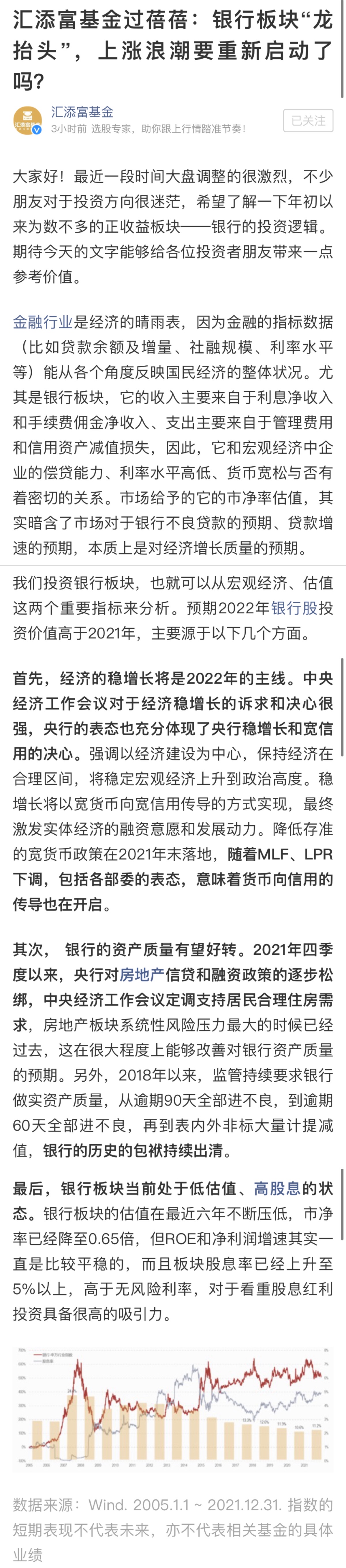 過蓓蓓對近期市場關注的正收益板塊——銀行的投資邏輯進行了深度解讀:“我們預期2022年銀行股投資價值高于2021年。“