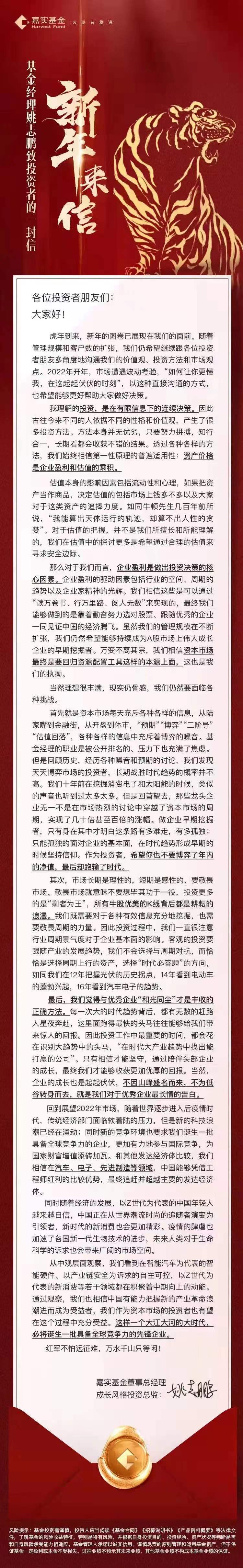 在虎年到來之際,姚志鵬用一句:“如何讓你們更懂我,在這起起伏伏的時刻”,直接表達了希望與投資者多角度地溝通價值觀、投資方法和市場觀點的愿望。