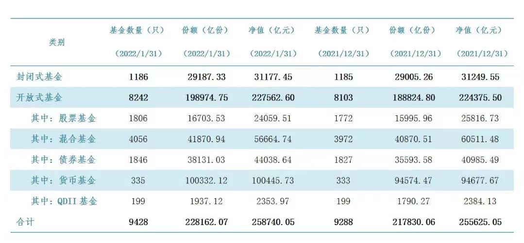截至2022年1月底,我國境內(nèi)共有基金管理公司137家,其中,外商投資基金管理公司45家,內(nèi)資基金管理公司92家;取得公募基金管理資格的證券公司或證券公司資產(chǎn)管理子公司12家、保險(xiǎn)資產(chǎn)管理公司2家。