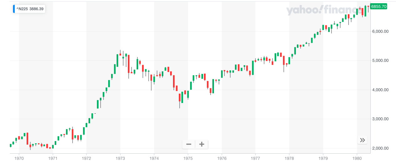 以下是日經(jīng)225指數(shù)1970-1980年走勢圖: