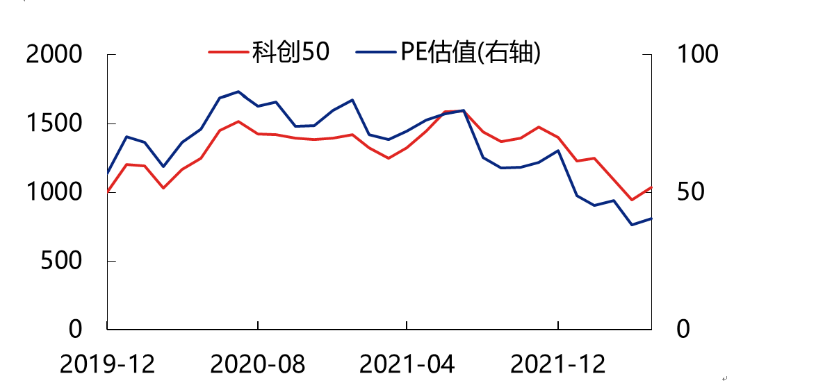 而今天,科創(chuàng)50指數(shù)從2021年8月初的1639點,一度跌至2022年4月的853點。即便5月至今有所反彈,但仍有接近4成的科創(chuàng)板個股股價低于發(fā)行價,大量公司都已經(jīng)經(jīng)歷了甚至50%以上的回撤幅度。從估值層面上看,同樣已是科創(chuàng)板開板以來最低水平,科創(chuàng)50指數(shù)40倍左右的PE估值,已低于創(chuàng)業(yè)板指49倍左右的水平。