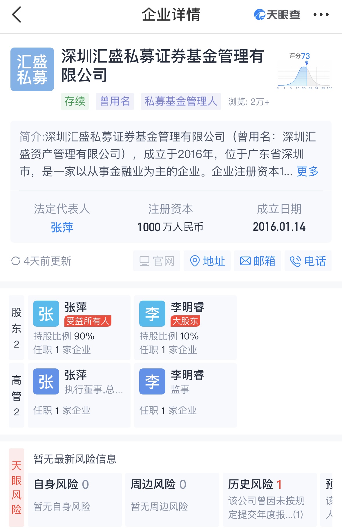 記者從中國(guó)證券投資基金業(yè)協(xié)會(huì)官網(wǎng)查詢到,深圳匯盛私募證券基金管理有限公司管理規(guī)模為10億元至20億元,實(shí)際辦公地在杭州。