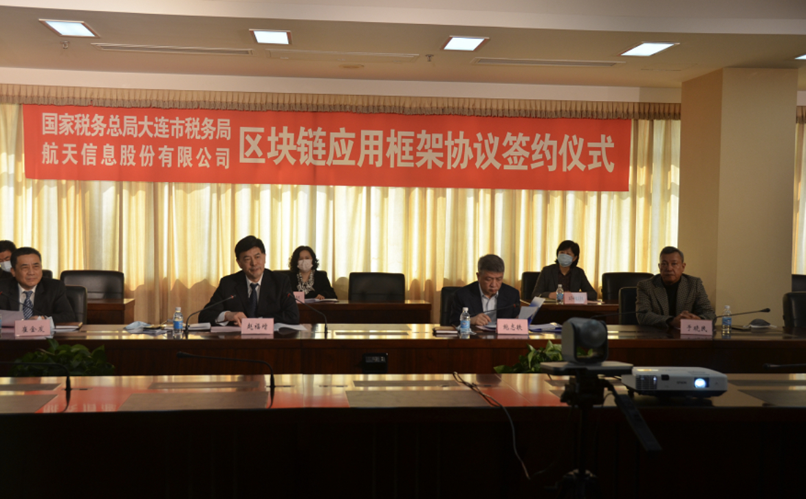 2020年4月9日,航天信息股份有限公司與國(guó)家稅務(wù)總局大連市稅務(wù)局簽署區(qū)塊鏈應(yīng)用框架合作協(xié)議。雙方充分響應(yīng)疫情防控期間“不聚集、不見(jiàn)面、零接觸”號(hào)召,采用遠(yuǎn)程視頻方式進(jìn)行協(xié)議簽署。