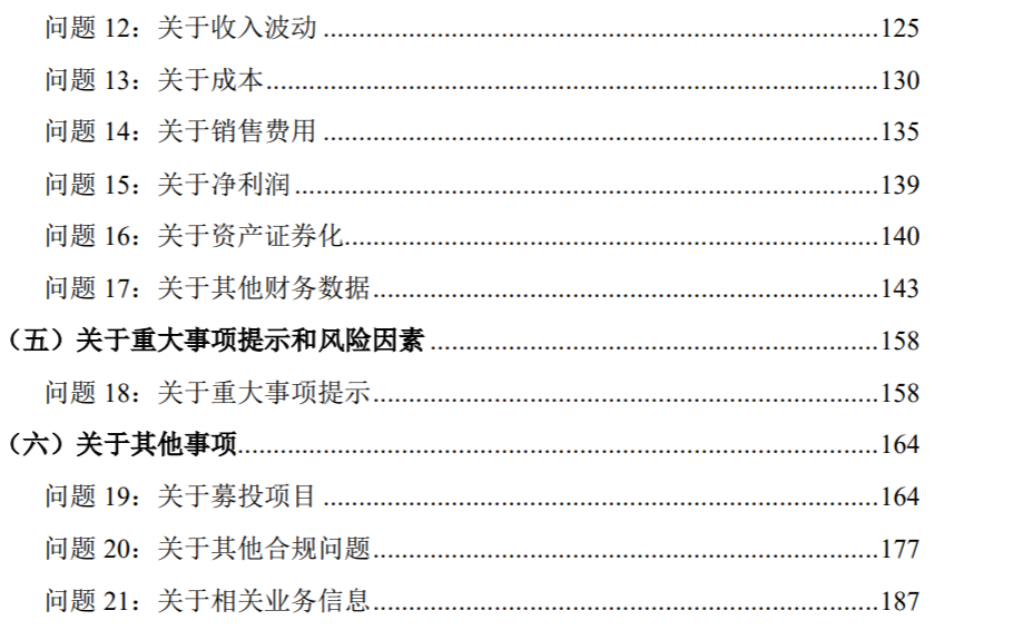 首輪問(wèn)詢回復(fù)共計(jì)6大類21個(gè)問(wèn)題,涉及發(fā)行人股權(quán)結(jié)構(gòu)及董監(jiān)高基本情況、發(fā)行人業(yè)務(wù)、關(guān)于公司治理與獨(dú)立性、財(cái)務(wù)會(huì)計(jì)信息與管理層分析、重大事項(xiàng)提示和風(fēng)險(xiǎn)因素等。