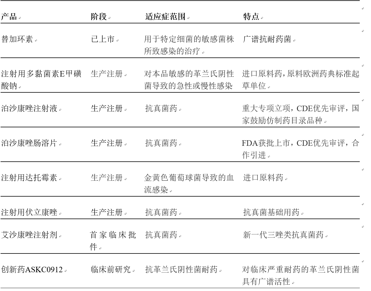 與此同時(shí),奧賽康積極優(yōu)化產(chǎn)業(yè)結(jié)構(gòu),在抗耐藥菌感染和慢性病領(lǐng)域均有建樹。公司從臨床需求的角度出發(fā),現(xiàn)已形成不同梯度、針對不同耐藥菌感染的系列產(chǎn)品線布局(詳見下表),將進(jìn)一步鞏固公司在耐藥菌感染領(lǐng)域的地位,產(chǎn)生新的經(jīng)濟(jì)增長點(diǎn)。