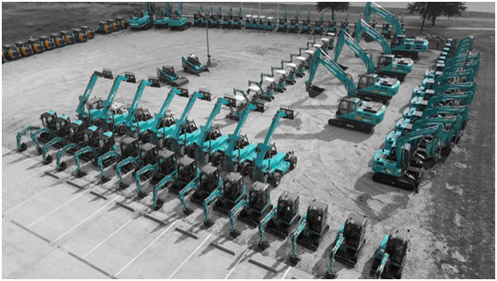 在美國(guó)得州大雪天氣下山河智能產(chǎn)品整齊劃一準(zhǔn)備交付(供圖:山河智能)