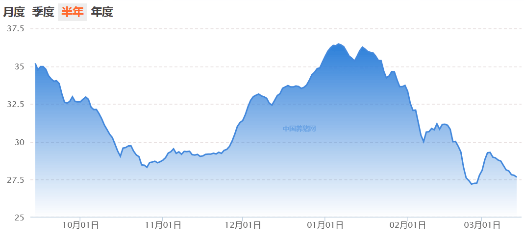 根據(jù)農(nóng)業(yè)農(nóng)村部對全國500個集貿(mào)市場監(jiān)測,3月份第一周,全國豬肉價格每公斤47.46元,連續(xù)6周下降,同比下降19.8%。機構(gòu)預計,2021年一季度全國生豬出欄同比大概會增長40%左右,豬肉價格水平還會下降。