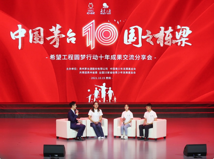 千里之外的北京,成果交流分享會(huì)的分會(huì)場(chǎng),數(shù)位茅臺(tái)圓夢(mèng)學(xué)子也與主持人暢談著理想與奮斗,勵(lì)志要成為國(guó)家的棟梁之材。