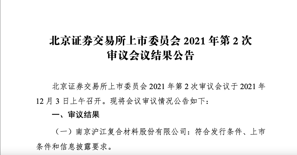 12月3日,北交所上市委第二場(chǎng)會(huì)議審議結(jié)果出爐:滬江材料符合發(fā)行條件、上市條件和信息披露要求。這是北交所上市委履職后審議的第二個(gè)項(xiàng)目;滬江材料也成為北交所設(shè)立以來,第二家按照注冊(cè)制規(guī)定申請(qǐng)公開上市的公司。