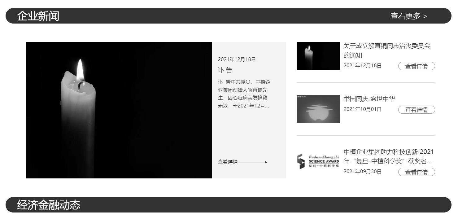 目前,中植集團官網(wǎng)頁面已調整為黑白色。