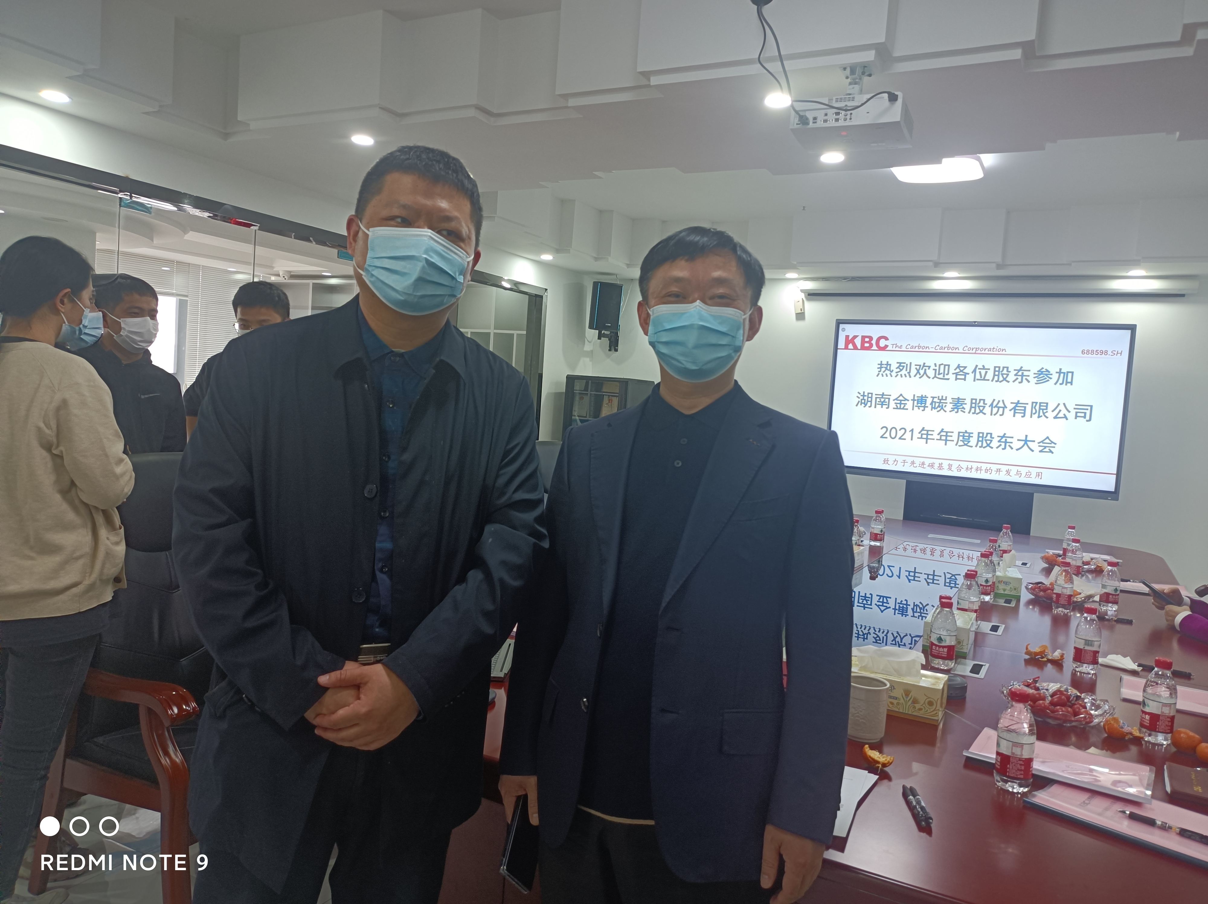 《證券日?qǐng)?bào)》記者(左)與廖博士在股東大會(huì)現(xiàn)場(chǎng)合影