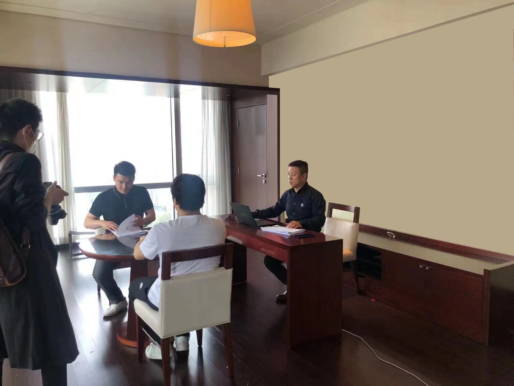據(jù)許其新介紹,因疫情管控原因,現(xiàn)場會議原定參會人數(shù)不能超過10人,組織方為此還提前準備了一個超70平方米的大會議室。但在5月5日會議當天,由于疫情管控措施的進一步升級,酒店對現(xiàn)場參會人數(shù)也有了更嚴格的限制,現(xiàn)場會議也只能臨時由三樓會議室挪到了20層舉行,參會人數(shù)也被進一步限制。