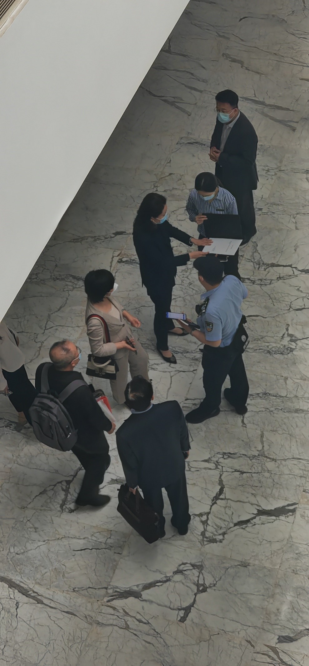 多位自稱是參會股東的人士在民警見證下與酒店方進行交涉(攝影/向炎濤 馬宇薇)