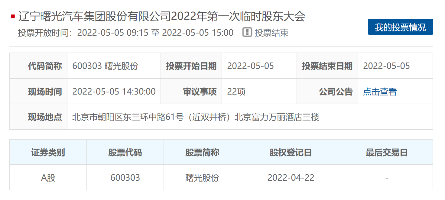 5月5日晚間,上交所網(wǎng)站顯示曙光股份第一次臨時股東大會已投票結(jié)束(來源:上交所)