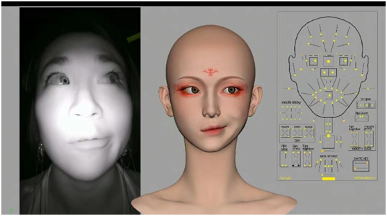 在驅(qū)動(dòng)環(huán)節(jié),天娛數(shù)科自建400㎡超大動(dòng)捕棚,可實(shí)現(xiàn)視覺(jué)動(dòng)捕、光學(xué)動(dòng)捕、慣性動(dòng)捕、光慣混合四種技術(shù)解決方案,滿足從工業(yè)影視級(jí)到輕量化消費(fèi)級(jí)不同級(jí)別、不同場(chǎng)景的應(yīng)用需求,成本從百萬(wàn)級(jí)降至千元級(jí)。比如輕量化視覺(jué)實(shí)時(shí)捕捉方案,用戶只需要一個(gè)普通的RGB攝像頭,就能實(shí)現(xiàn)對(duì)面部、肢體及手勢(shì)動(dòng)作的捕捉,既不需要任何提前訓(xùn)練,也不需要穿動(dòng)捕服等特殊設(shè)備,即可進(jìn)行輕量化虛擬直播,大幅降低了用戶虛擬直播的門檻。