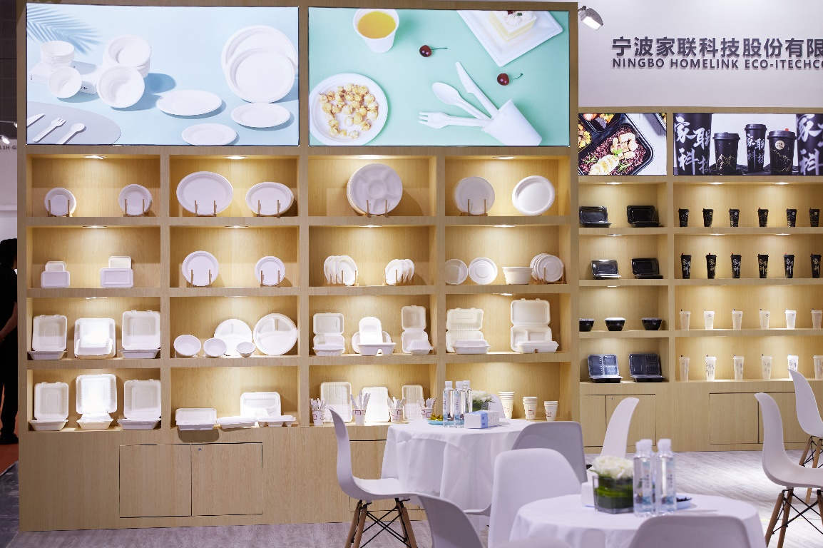 本次展會(huì),家聯(lián)科技不僅為餐飲品牌量身定制了一系列生物全降解包裝產(chǎn)品:生物降解餐飲打包袋、PLA耐熱吸管、生物降解餐具等,還攜帶了適合餐飲行業(yè)的植物纖維產(chǎn)品,其主要有餐飲打包餐盒、拌面/沙拉碗、烘焙托盤等百余款SKU,分區(qū)展示。作為全球領(lǐng)先的環(huán)保餐具企業(yè),家聯(lián)科技推出的低碳產(chǎn)品涵蓋了從包裝材料到餐具的全方位解決方案。從包裝的材料、工藝、結(jié)構(gòu)、設(shè)計(jì)、生產(chǎn)管理等角度幫助品牌實(shí)現(xiàn)包裝的可持續(xù)發(fā)展。目前家聯(lián)已開(kāi)發(fā)出多種生物降解材料降本方案、植物纖維包裝解決方案、茶飲制品輕量化解決方案等,已逐步與知名餐飲品牌達(dá)成低碳共識(shí),綠色生產(chǎn)方案。