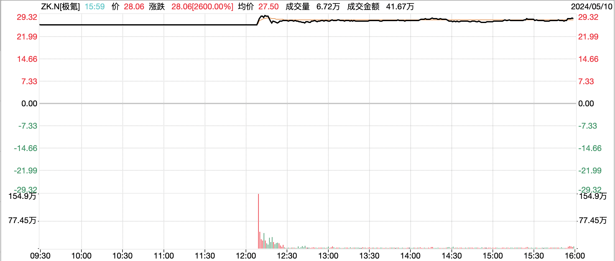 極氪上市首日開(kāi)盤價(jià)為26美元/股,盤中曾一度漲超38%,截至收盤,極氪報(bào)收28.26美元/股,上漲34.57%,總市值68.98億美元。