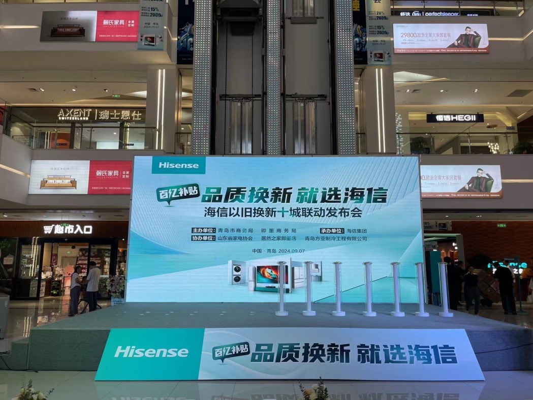 據(jù)介紹,海信此次以舊換新活動(dòng)通過十城聯(lián)動(dòng)展開,青島、北京等城市率先舉行發(fā)布會(huì),陸續(xù)會(huì)在其他城市舉行此次活動(dòng)發(fā)布會(huì)。青島是此次活動(dòng)主會(huì)場(chǎng),活動(dòng)當(dāng)天,青島市商務(wù)局、山東省家電協(xié)會(huì)共同見證這一時(shí)刻。