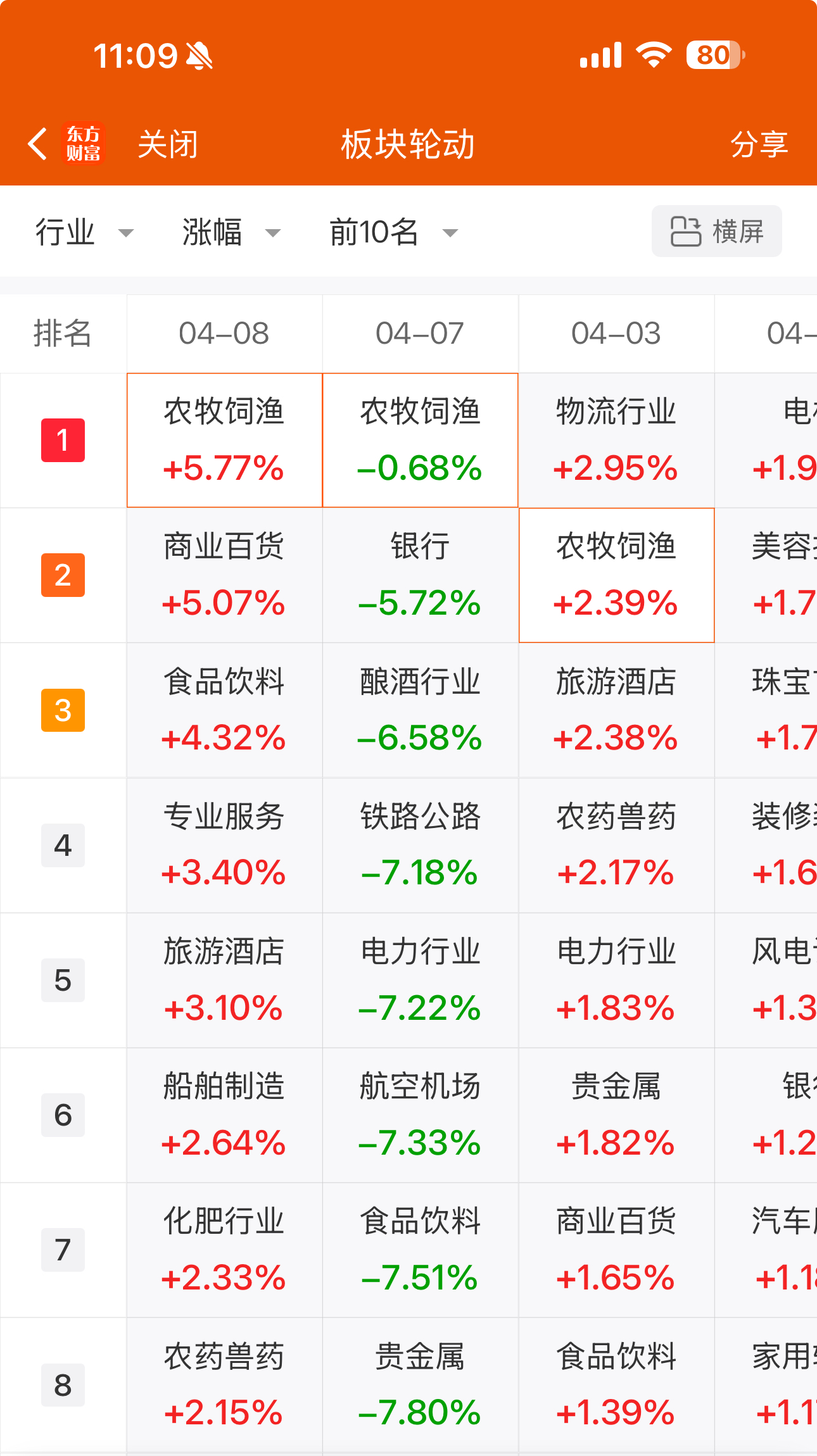 4月8日,商業(yè)百貨板塊持續(xù)走高。截至上午11時9分,商業(yè)百貨板塊漲5.07%,板塊內(nèi)甘肅國芳工貿(mào)(集團)股份有限公司(以下簡稱:國芳集團,601086)、孩子王兒童用品股份有限公司(301078)、蘭州麗尚國潮實業(yè)集團股份有限公司(600738)等多股漲停。其中,國芳集團走出3天3板。