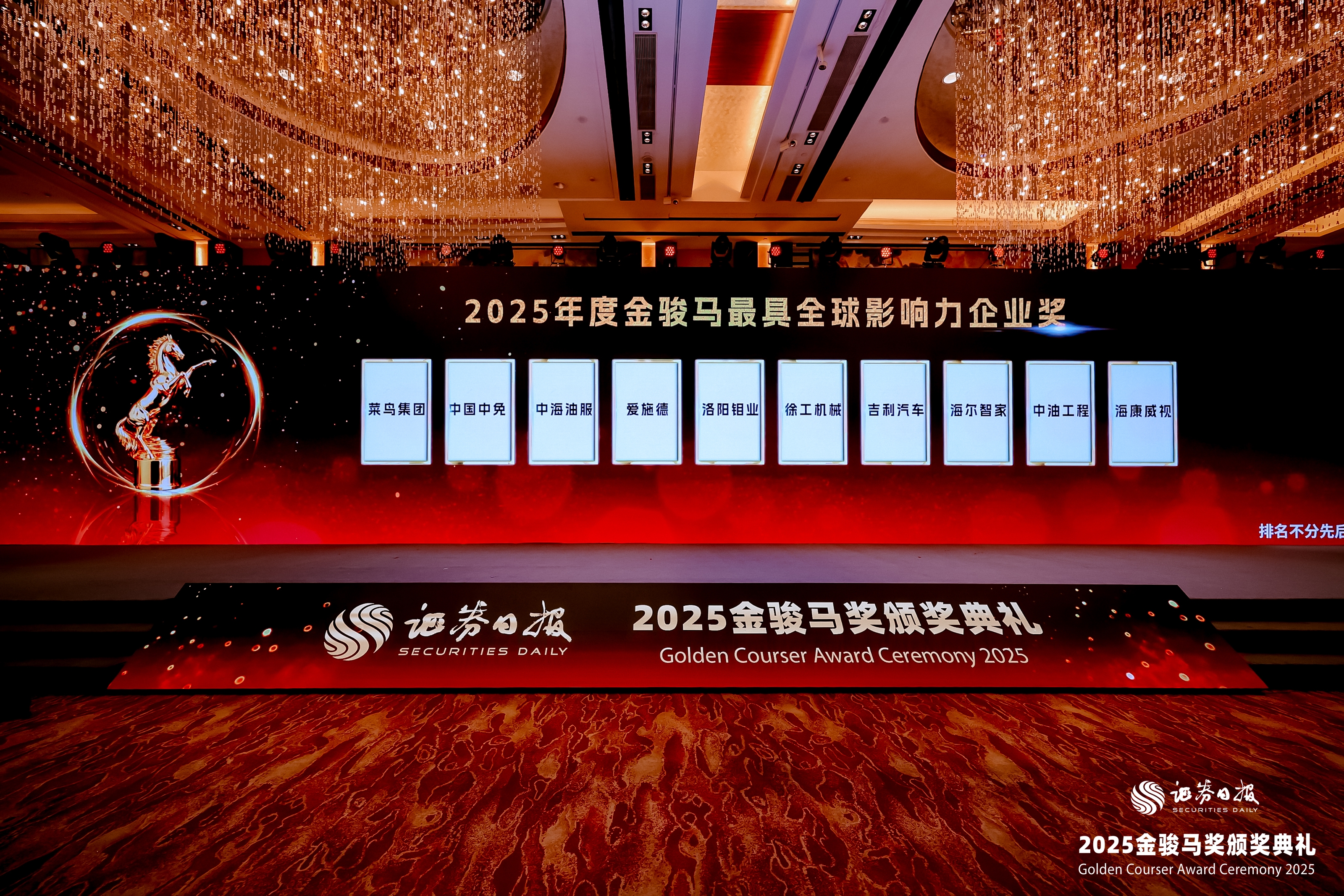 本報(bào)訊 (記者馮思婕)12月26日,由《證券日?qǐng)?bào)》社有限責(zé)任公司主辦的“2025證券市場(chǎng)年會(huì)”在北京香格里拉飯店舉行。作為年會(huì)的重要組成部分,2025金駿馬獎(jiǎng)?lì)C獎(jiǎng)典禮對(duì)在推動(dòng)資本市場(chǎng)穩(wěn)健運(yùn)行和高質(zhì)量發(fā)展方面作出突出貢獻(xiàn)的機(jī)構(gòu)與個(gè)人予以表彰。憑借突出的全球化經(jīng)營(yíng)成果、持續(xù)的技術(shù)創(chuàng)新能力、完善的產(chǎn)業(yè)布局以及不斷提升的品牌影響力,杭州??低晹?shù)字技術(shù)股份有限公司(以下簡(jiǎn)稱“??低?rdquo;)榮獲“2025年度金駿馬最具全球影響力企業(yè)獎(jiǎng)”。
