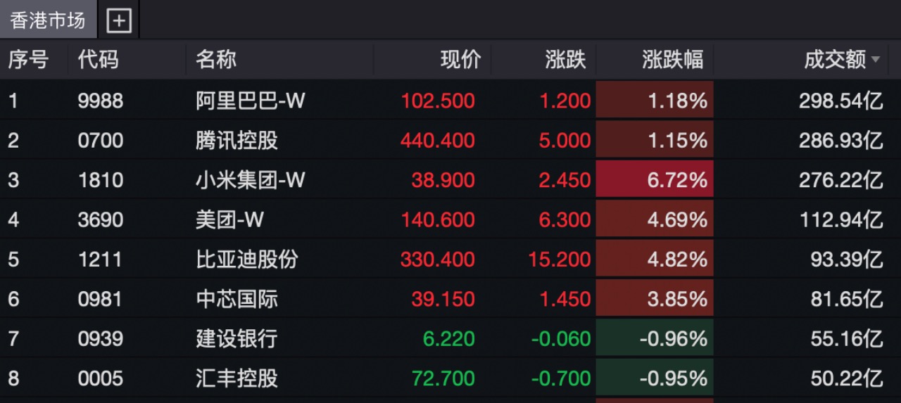 大型科技公司方面,截至當日收盤,小米集團漲超6.72%,阿里巴巴漲近1.18%,美團漲4.69%,騰訊控股漲1.15%。機器人公司方面,越疆、地平線機器人、優(yōu)必選分別上漲22.06%、11.26%、7.91%。汽車公司方面,比亞迪股份、蔚來、小鵬汽車分別上漲4.82%、5.51%、3.62%。