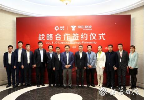 圖為京東物流和協(xié)鑫創(chuàng)展簽署戰(zhàn)略合作協(xié)議
