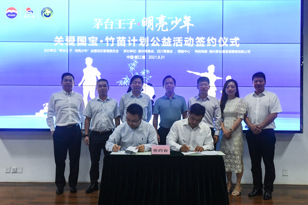 8月31日上午,由“茅臺王子·明亮少年”公益基金主辦,貴州省青基會、四川省青基會、中國大熊貓保護(hù)研究中心承辦的“關(guān)愛國寶·竹苗計劃”公益活動在成都正式簽約啟動。中國大熊貓保護(hù)研究中心副主任朱濤、黨政辦主任李德生,四川省青基會秘書長張萬謙,貴州省青基會副秘書長洪葉;貴州茅臺醬香酒營銷有限公司董事長張旭、總經(jīng)理李強(qiáng)清、副總經(jīng)理陳宗強(qiáng)以及部分經(jīng)銷商代表出席簽約啟動儀式。