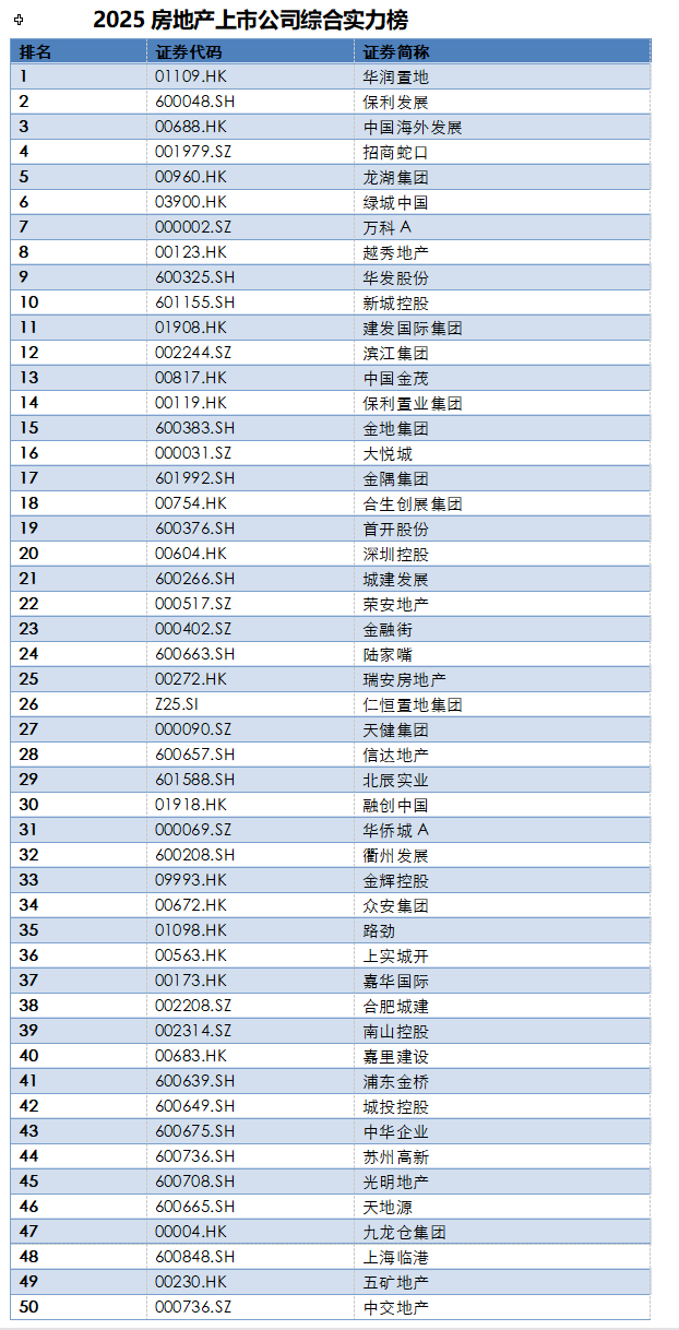 (2025年房地產(chǎn)上市公司綜合實(shí)力50強(qiáng) 主辦方供圖)